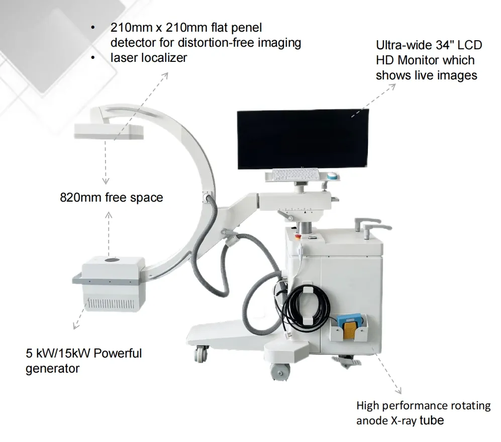 A: The main difference is mobility. While stationary units are fixed in one room, this mobile unit can be wheeled to ICUs, operating rooms, or field clinics, providing high-quality digital imaging wherever the patient is located.