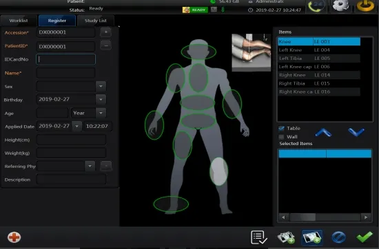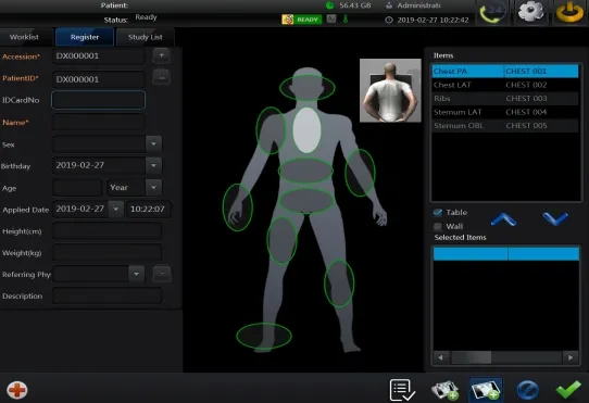 A: It can perform radiography of the chest, abdomen, extremities (arms, legs, feet), and spine. It is ideal for detecting fractures, dislocations, and lung abnormalities.
